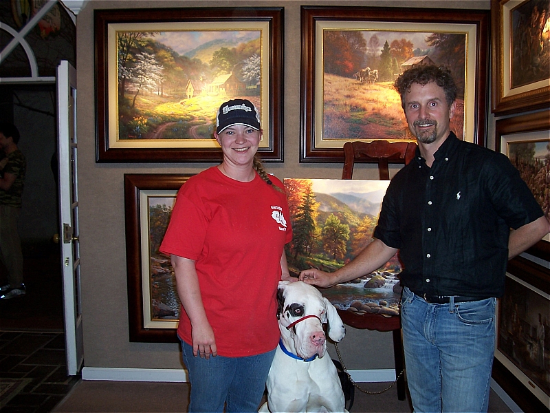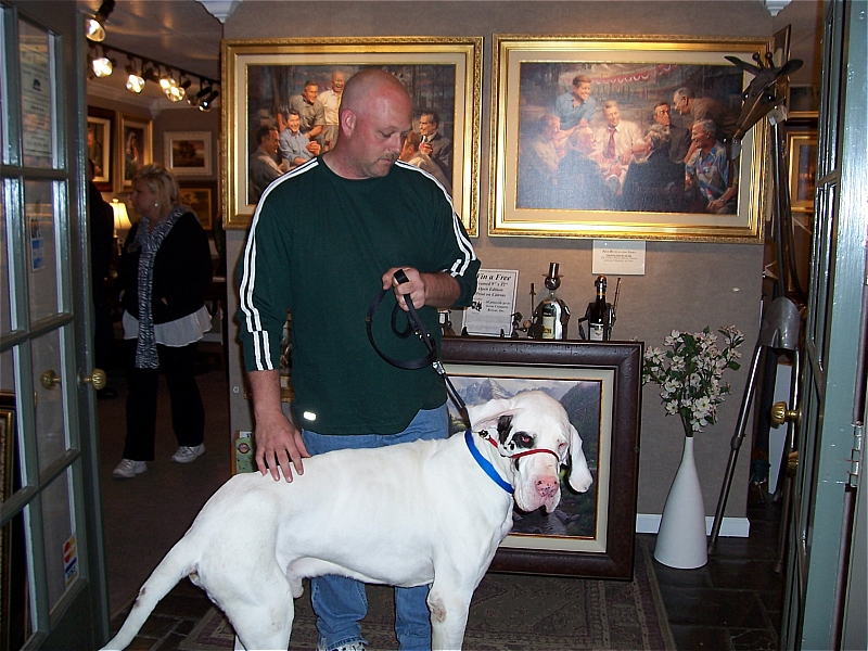 | All of the donations for the door prize raffle went to the Great Creatures Rescue of Knoxville. Great Creatures Rescue is active in helping with vet bills and providing foster homes for Danes and Wolfhounds that have been neglected or abandoned. Recently they have taken custody of a 3 month old Great Dane puppy that was kicked so hard by it's owner that it broke his hind leg. Vet bills for the required surgery can be over $2,000.00. Infinity Fine Art, with the help of Mark Keathley, has raised over $2,000.00 for the Great Creatures Rescue just in the past two months. Thank you for your generosity!! |